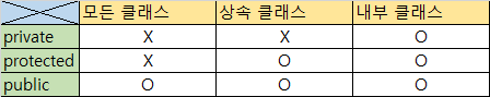 그래서 Class 선언을 할 때 접근 제한자를 설정해주어야 한다.