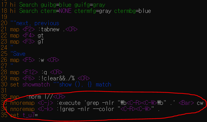 이러한 경우 .vimrc 파일에 mapping 을 통해 search 키를 만들면 정말 편하게 쓸 수 있다.